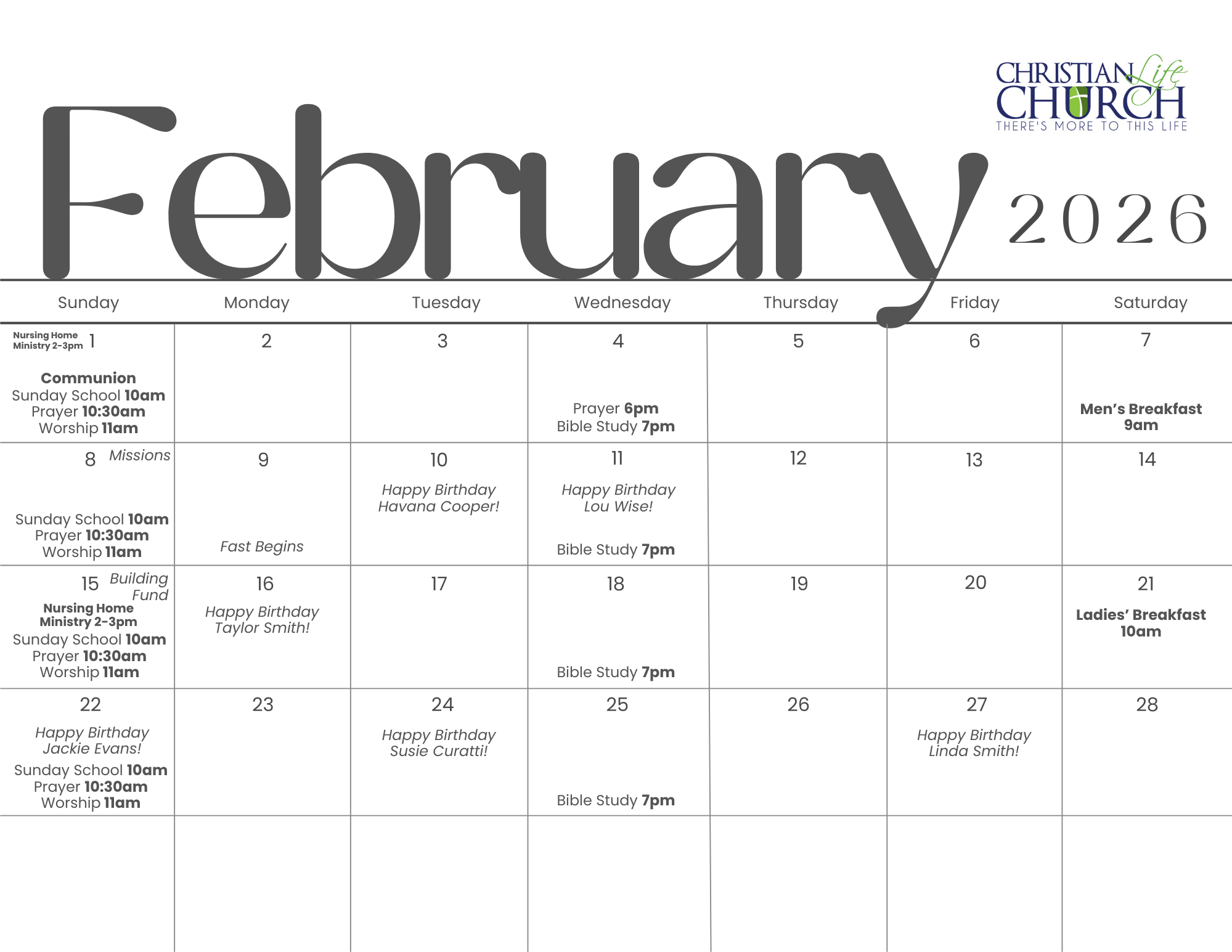We invite you to join us for our annual Christmas service at Christian Life Church on Sunday, December 21st at 11am to celebrate the real reason for the season. There will be no Sunday School service at 10am.